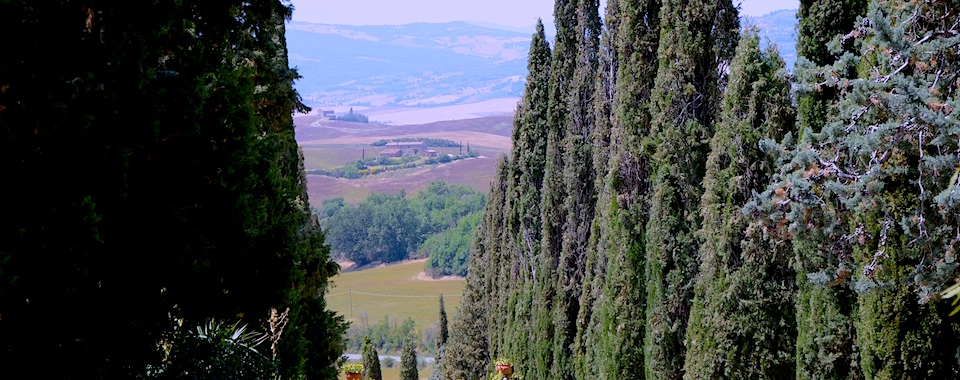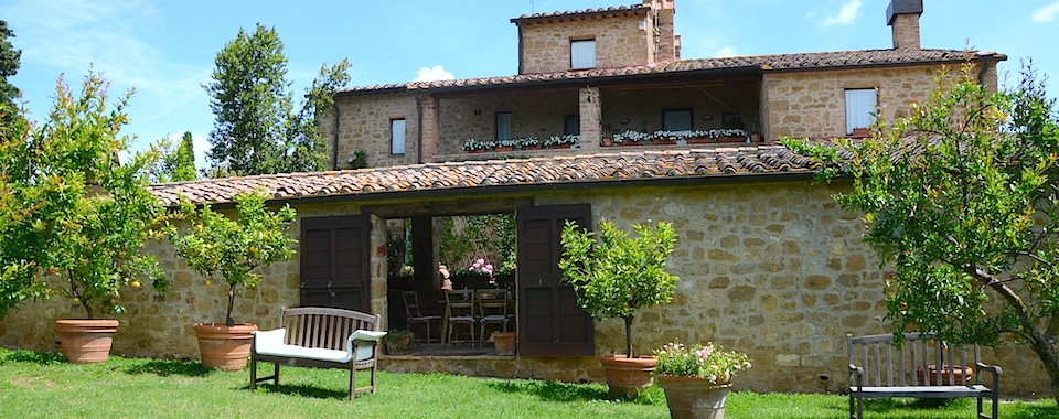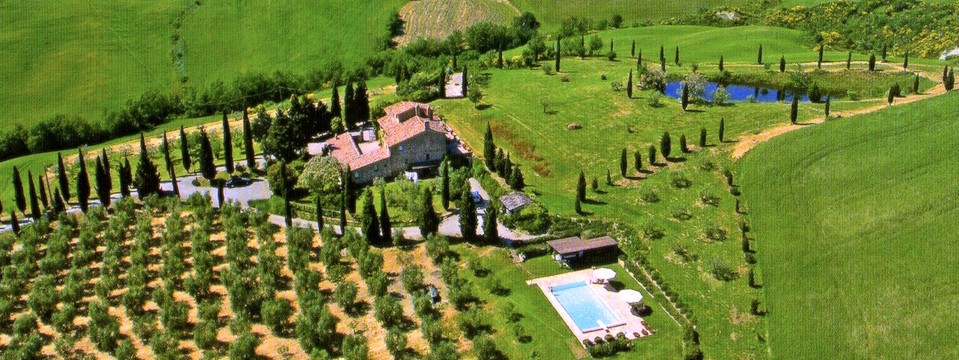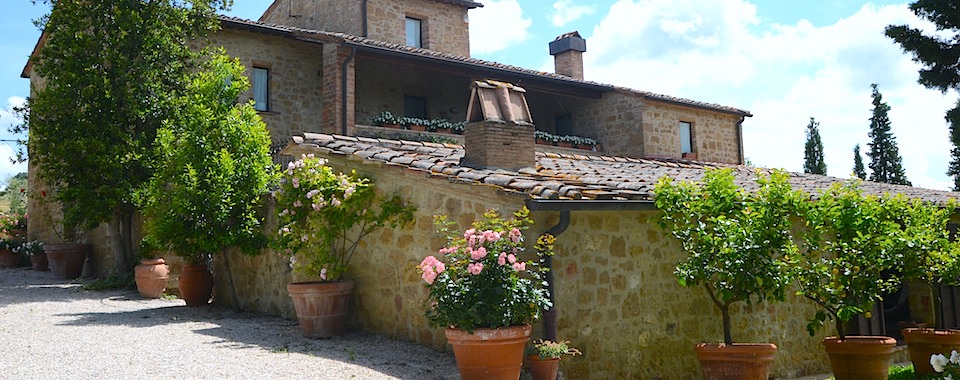 On the soft hills of the Orcia Valley in the countryside of Pienza in Tuscany, where scotch broom, elm and wild plum trees, rosemary and sage grow as in days gone by, a cypress lined road leads to an old house, harmoniously tied to its ancient roots in the centre of a fifty acre working farm with an olive orchard, vineyards, fruit trees and cultivated fields.
